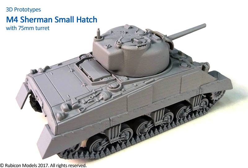 We do have a small hatch M4 in the making! Come with the same 75mm / 105mm turret, tank crews, open hatches, and other goodies. It also comes with sand shields, optional appliqué armour, and a turret flammer add-on!