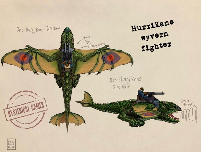 If we reach Stretch Goal II, all Pilot backers will have one polyurethane resin 10mm scale Orc HurriKane and flying base added to their pledge for free and the rules will be extended to include the HurriKane and its breath attack.