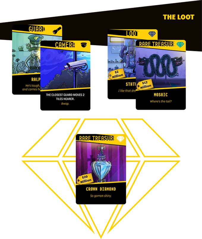 Die Spieler spielen sowohl gegeneinander, als auch gegen eine Timer Mechanik. Nur wer vor Ablauf der Zeit so viel Beute wie möglich gesammelt und wieder aus dem Museum entkommt kann gewinnen. Wer dabei von den Wachen erwischt wird ist nicht automatisch aus dem Spiel, verliert aber alle Beute und muss neu einbrechen. Die Diebe haben alle eine eigene Sonderfähigkeiten und werden genau wie die Wachen durch Miniaturen repräsentiert.