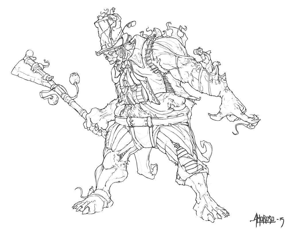 The Urkin Alchemancer is the result of one of Nancy’s experiments. She imbued him with a greater measure of The Engine’s power but was only partially successful. The result was an unstable and Alchemantically charged urkin that is both useful and deadly. The Urkin Alchemancer now serves as Nancy’s assistant in her laboratory and is often sent to the surface on missions of import to her foul works. He also can transform into the fearsome Bloodrage form – sometimes unwillingly.