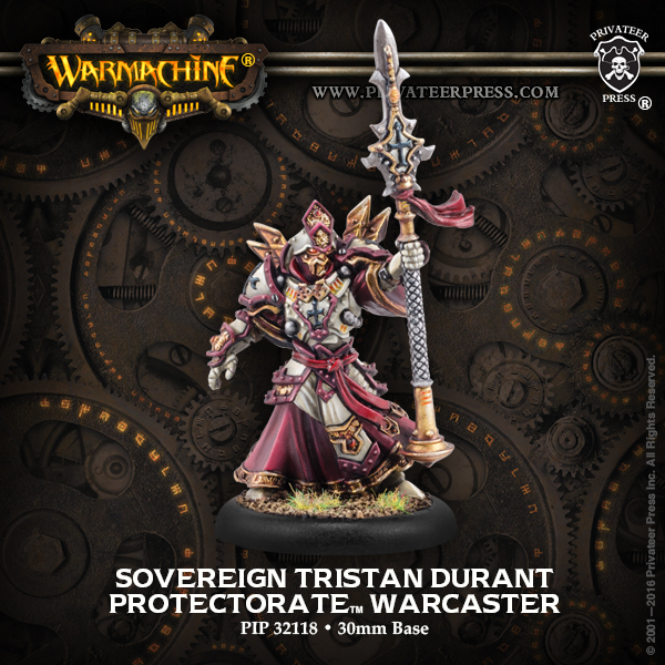 Since becoming a full-fledged warcaster, Tristan Durant has been elevated to high station as a sovereign of the Protectorate. He serves the Creator by spreading the word of Menoth to all who would hear it. Though compassionate, Durant does not hesitate to unleash holy wrath in Menoth’s name upon his enemies, particularly when such foes threaten the safety of the growing flock under his protection.