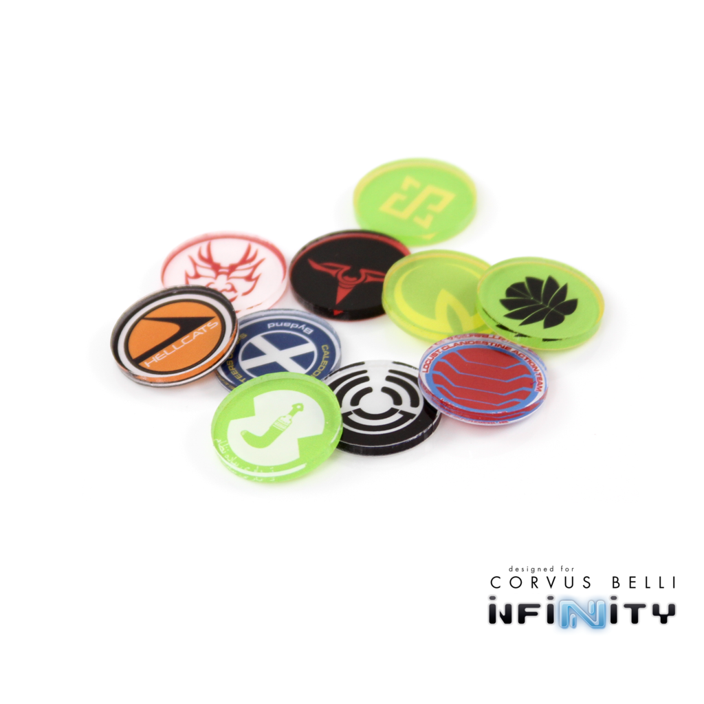 New unit markers will be added to the list each month following the new releases for Infinity the Game by Corvus Belli. Markers are 25mm in diameter, and are printed in full-color on 3mm clear acrylic.