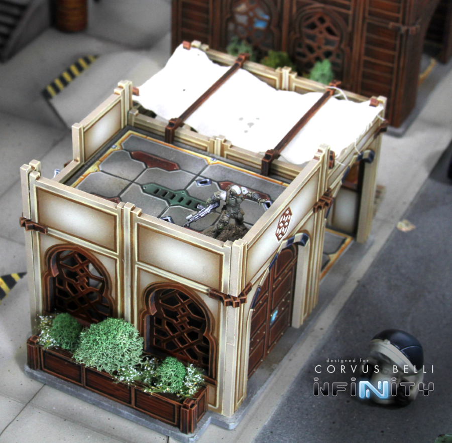 The Alcazaba Commercial Building is a medium-sized Haqqislam-themed building with playable interiors for Infinity the Game.