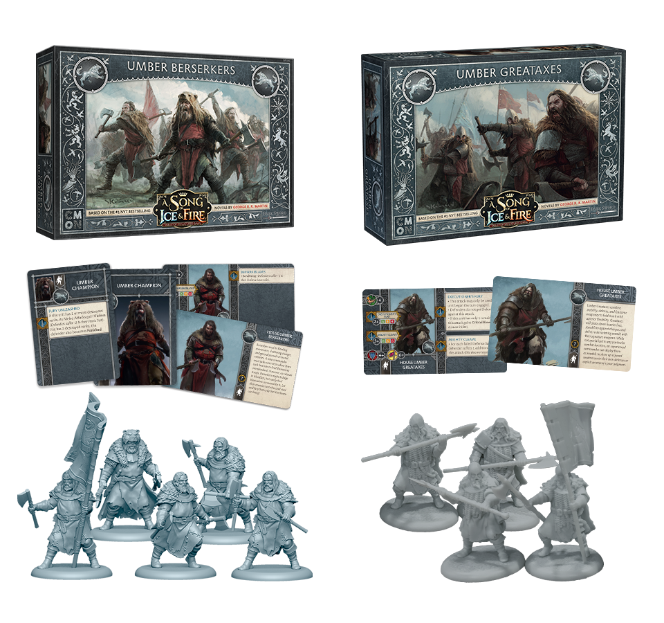 The Umber Greataxes are a very flexible unit on the field. While they don’t overly-excel at any one role, they can easily shift between several different roles as the battle dictates. They have a moderate melee attack ability and have decent armor. They can plug gaps in battle lines, stand against enemy forces, or be sent on rescue missions to hold objectives in equal measure. The Umber Greataxes Unit Box contains 12 miniatures that any Stark commander would find useful when battle is met.