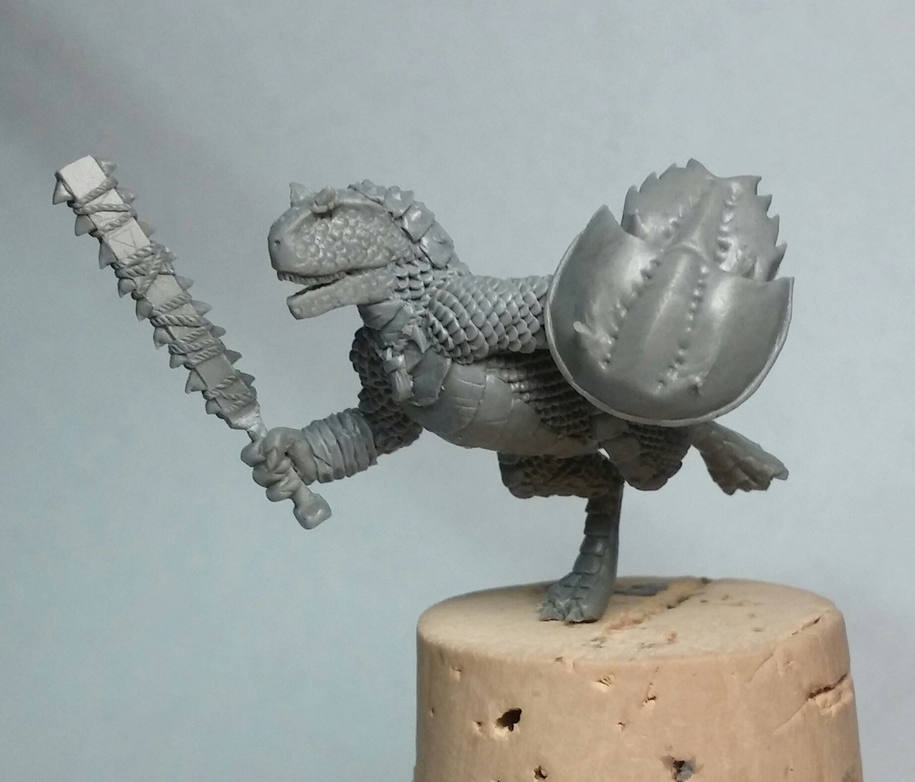 Another little preview of our forthcoming fantasy explorers project, this time a lizardman sculpted by the talented Micah Nichols. We particularly like his shield! More variants to come…