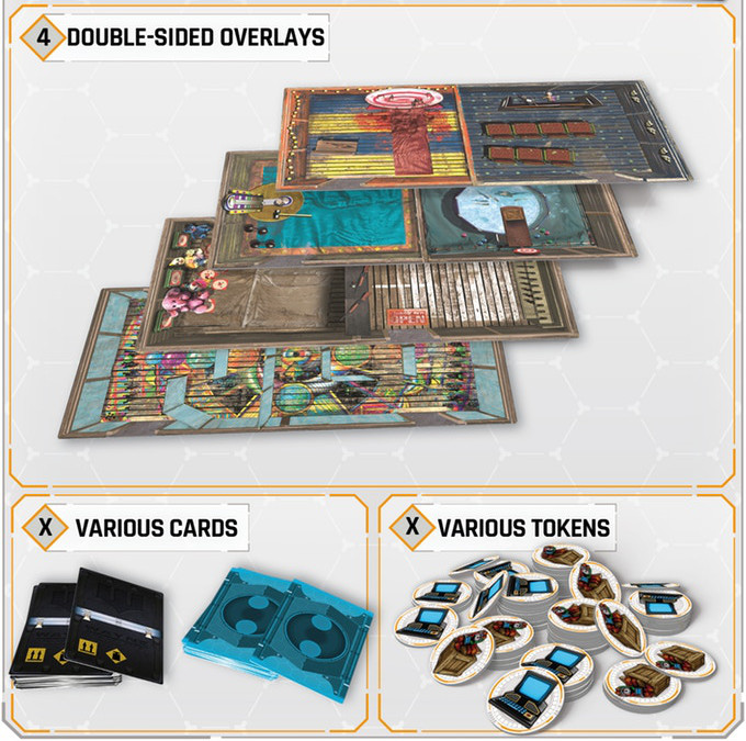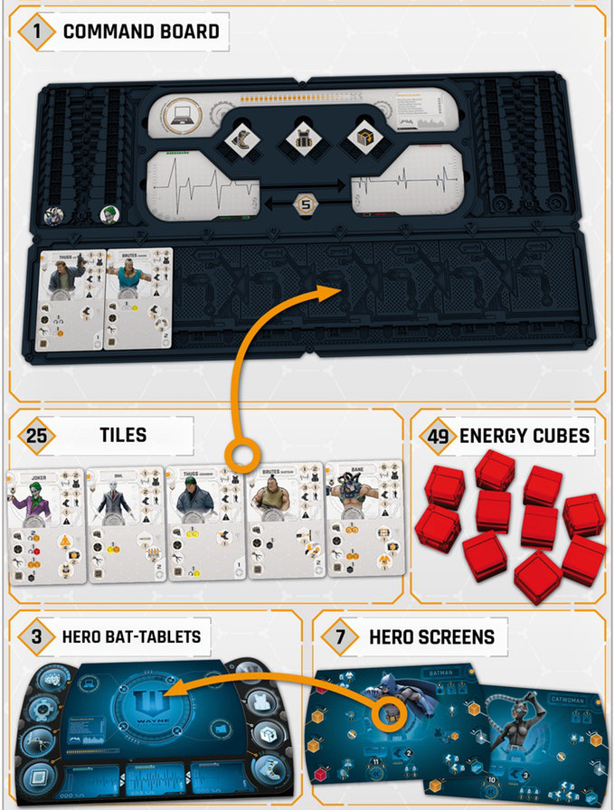 The villain controls their characters through a plastic dashboard called the command board, in which punchboards and the tiles are placed. The villain places the tiles in their command post in the order indicated by the scenario.
