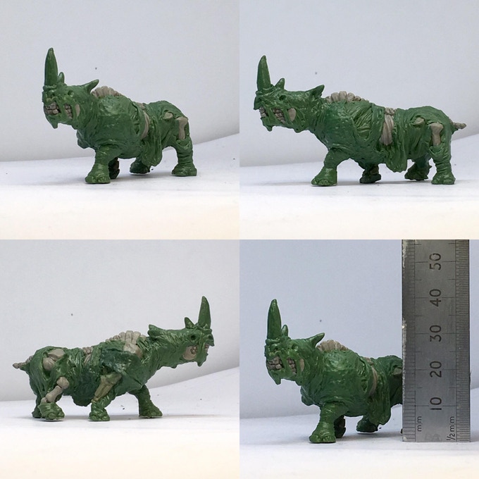 The humanoid miniatures are 28mm scale, with the animals made to suit that size. All miniatures are supplied with a round plastic slotta base or flying base if appropriate. There is also plans for stretch goal resin scenic bases for some of the beasts, should they become unlocked.