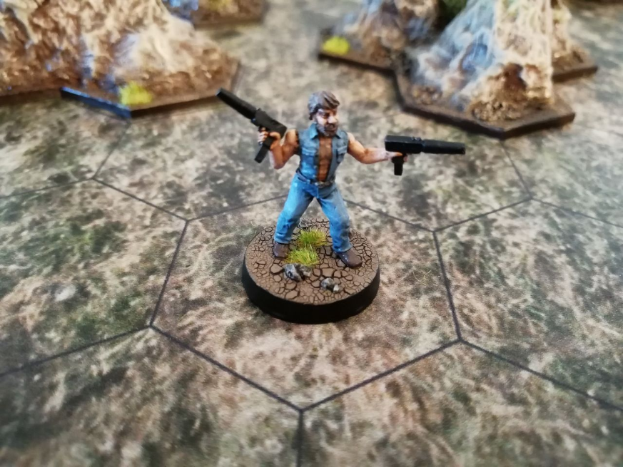 Das Spiel ist für Miniaturen im 28mm- oder 32mm-Maßstab konzipiert. Aber im Grunde ist es egal, wie groß die Miniaturen sind. So lange sie auf einem 50mm-Hexfeld stehen können, kannst du sie verwenden