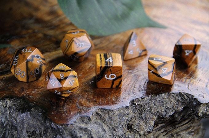 Dog Might Games haben vor einer Weile einen Kickstarter für Würfelsets aus Naturmaterialien, meistens Holz gestartet. Das Projekt ist bereits voll finanziert, läuft aber noch bis zum 15.5. für alle, die noch einsteigen wollen