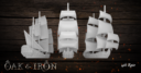 Quick and Simple: While many age of sail games place the focus on the intricacies of sailing ships, Oak & Iron is a game played from the Admiral’s perspective. The Admiral is not as focused on the exact point of sail of each of the ships in the fleet, but rather whether or not they are where they are supposed to be in relation with the rest of the fleet. The game is designed to streamline the rules for sailing to keep the game fast, furious, and focused on tactics rather than the minutia. The important aspects of sailing are present (no sailing in the wind’s eye!), but abstracted to keep it intuitive, and focused on fleet positioning and maneuvering.