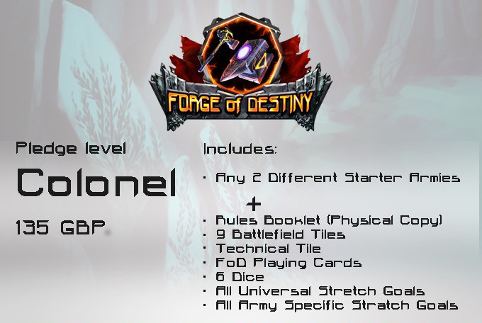 Ancient alien monoliths litter the battlefield, flashing in the bitter light of tracer-fire which rips across the purple sky, violating a world of horrifying wonder. Plasma cannons sing and behemoth alien creatures topple with earth-quaking violence. Cloaked troops storm hidden gunlines with blades in hand, eviscerating all resistance they find, then drop to the floor as psionic blasts melt their brains. Chain of command buckles and cracks under the stress of war on alien sands. Orders barked, lost on the mad and the dead, fading into the cacophony of EM-storms. This is a battlefield of glory and tragedy in equal measure, a slaughterhouse that cannot be yielded. This is a war where the survival of humanity in this new world hangs in the balance. This is a war which should never have been waged but must be won. As deliverance and damnation approach, it is a battle where every action of every person matters. Forge of Destiny is the game where EVERY ACTION COUNTS.