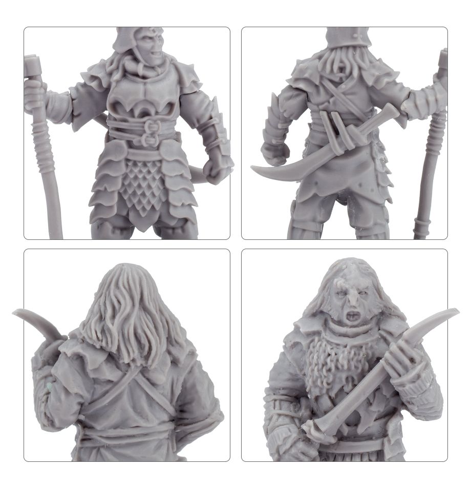 – A set of Morannon Orc Commanders, 4 resin miniatures supplied with 4 25mm round bases.Downloads