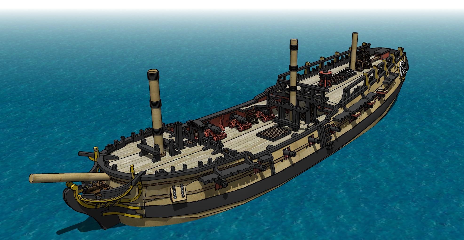 Nearly there. I want to do some basic stern decoration to keep the cost down, with an eye to doing a more complex add-on as a separate thing. That and a figurehead. I’m thinking we could allow folks to order custom names for their ship too.