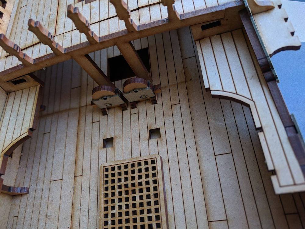 Also had to completely re-do the stern gallery windows (too wide). Added an extra layer of detail though.