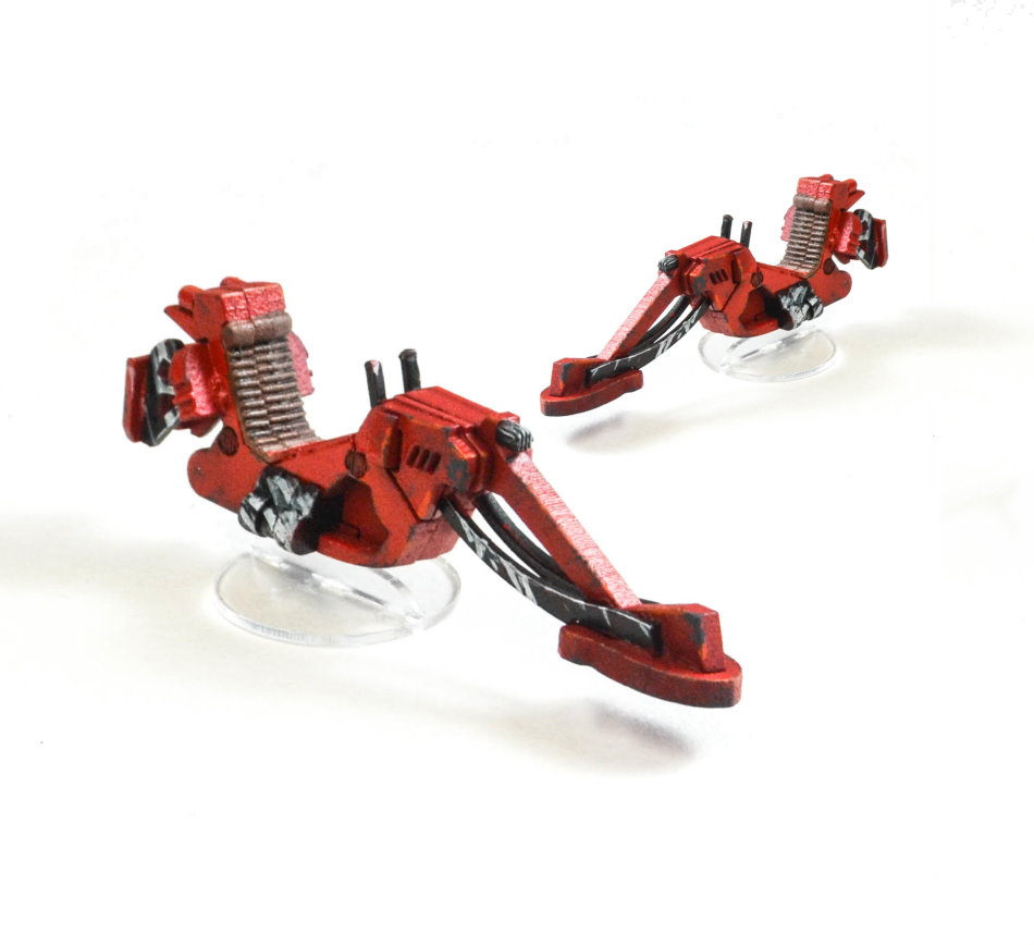 This kit contains two (2) grav bikes (‚chopper‘ style) with clear acrylic bases and stands. Several smaller parts of the model itself are made out of 1,5mm acrylic to ensure durability – please make sure you remove the protective foil before gluing the parts together.