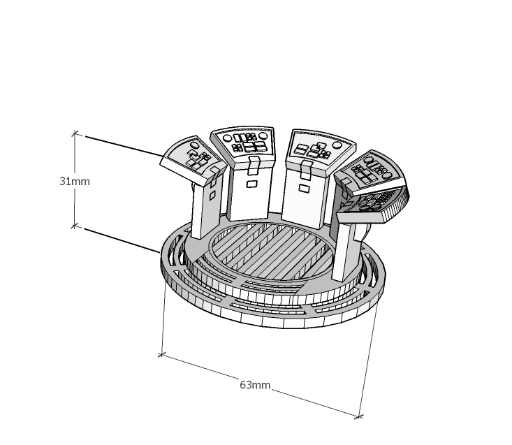 L: 241mm W: 241mm H: 80mm (not counting the roof piping and lights)