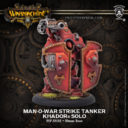 Man-O-War tankers are a response to the more impressive armaments and engines of war that Khador now finds set against it. Tankers support their smaller companions in battle, girding them with massive armored shields and laying down heavy supporting fire.