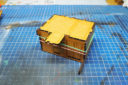 Nach den beiden Grundgebäuden ist das Dach an der Reihe. Um später möglichst viel Modularität zu ermöglichen, muss dieses separat zusammengebaut werden. Die typische Wölbung des Daches wird durch besonders dünnes HDF ermöglicht, das auf das darunter liegende Gerüst geklebt werden muss. Es empfiehlt sich hier, einige Klammern als Hilfsmittel zu verwenden.