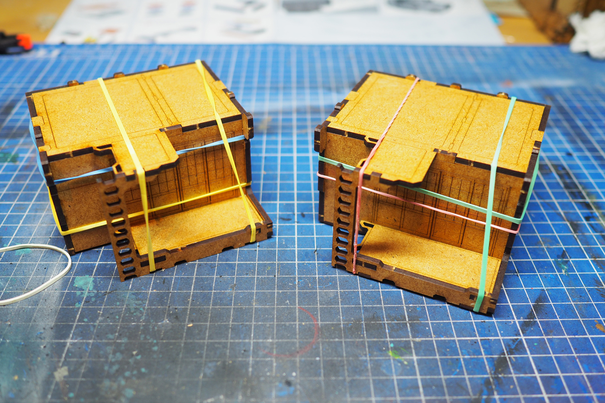 Wie bei den Markhallen, lassen sich die Grundkörper nach dem Herauslösen aus den Platten, mit wenig Aufwand und ein paar kleinen Hilfsmitteln, zusammenkleben.
