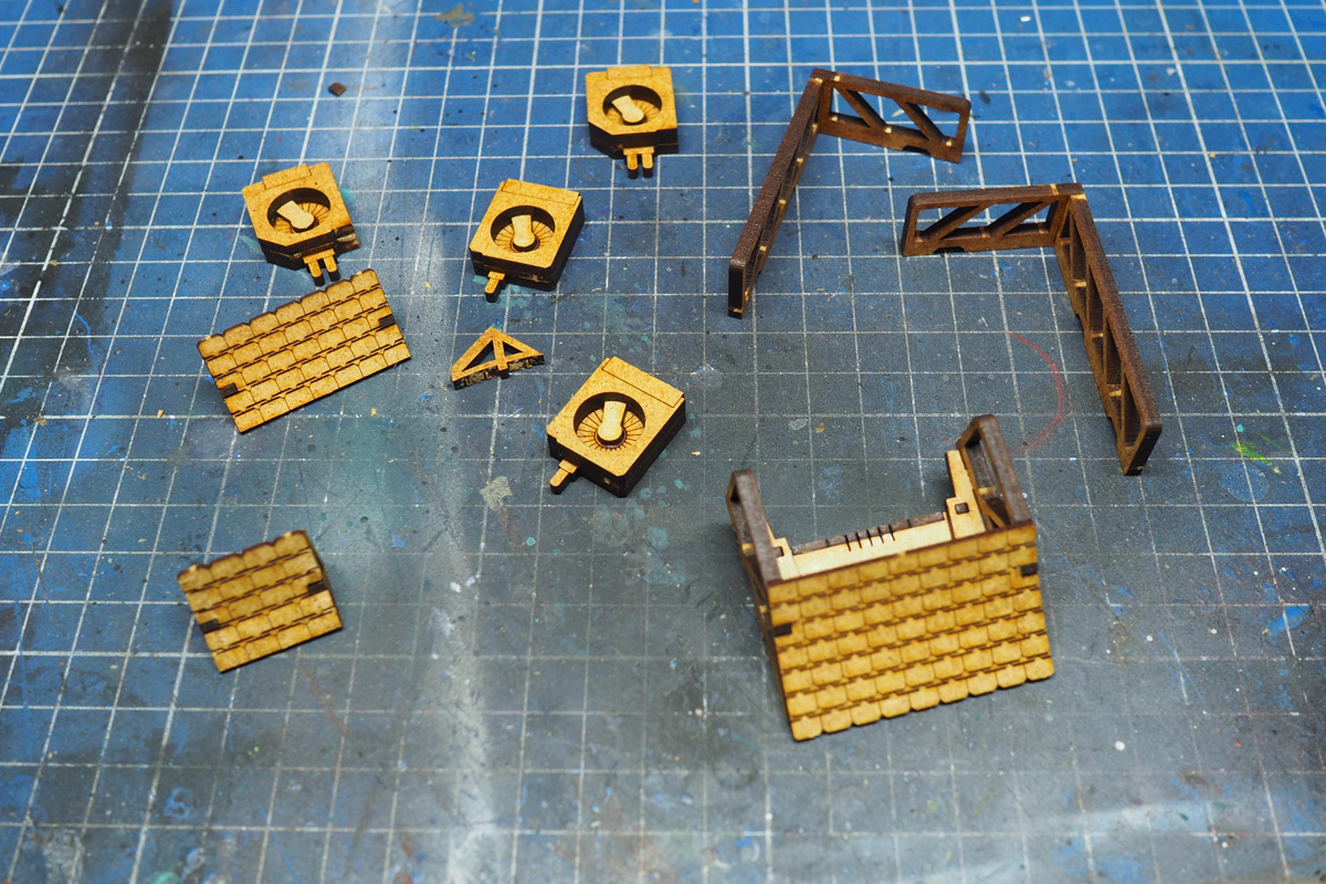 Auch bei den Wohnquartieren ging der Zusammenbau leicht von der Hand und es musste nur an den Nahtstellen etwas nachgeschliffen werden. Das Dach war hier ein wenig anspruchsvoller, aber auch das Problem konnte schnell gelöst werden.