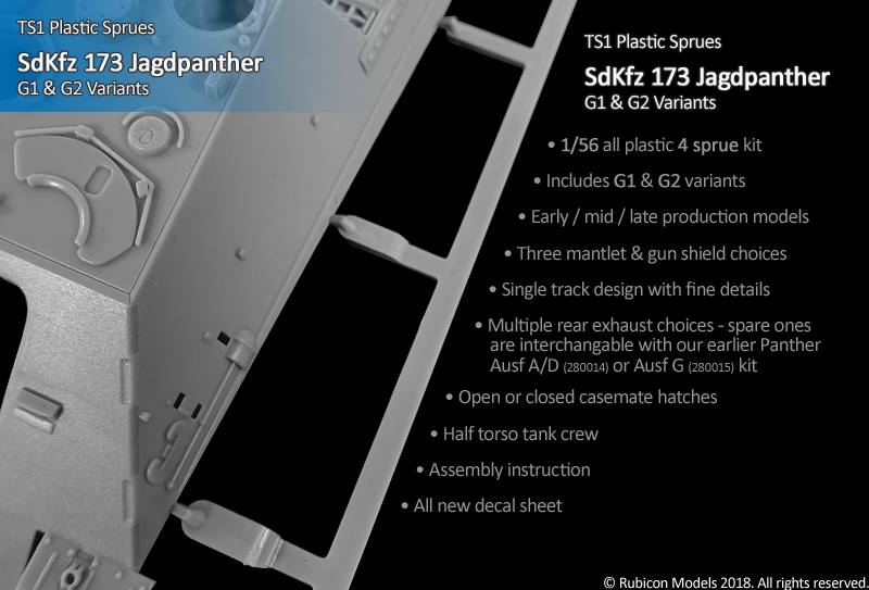 The Jagdpanther is a whooping FOUR sprue kit with two full chassis for the G1 and G2 variants. We have also included upgrade options within this kit to further enhance our existing Panther kits too!
