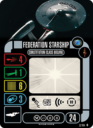 The generic Constitution Class (Kelvin) comes in at 24 SP as a dual-faction Federation and Mirror Universe ship. It has a Primary Weapon Value of 4, an Agility Value of 1, a Hull Value of 6, and a Shield Value of 3. It boasts the Evade, Target Lock, Scan, and Battle Stations Actions. Its Upgrade Bar has 1 Tech slot, 1 Weapon slot, and 2 Crew slots. For 24 SP, this is surely a fantastically sturdy vessel that’ll be hard for any opponent to take down easily!