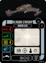On the Klingon side of things, the generic Warbird Class clocks in at 17 SP as a dual-faction Klingon and Mirror Universe ship. It’s got a Primary Weapon Value of 4, an Agility Value of 1, a Hull Value of 4, and Shield Value of 2. It has a pretty unique Action Bar that contains the Target Lock, Battle Stations, Cloak, and Sensor Echo Actions, giving this ship access to a blend of offensive and defensive capabilities. Its Upgrade Bar also contains 1 Tech slot, 1 Weapon slot, and 1 Crew slot, further proving the deadly versatility of this ship.