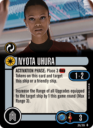 Last but not least, Nyota Uhura, the famous communications officer of the U.S.S. Enterprise! Both sides of Uhura come in at 3 SP, are Mirror Universe unique, and dual-faction Federation and Mirror Universe. Her first side lets you take any face up Communications Failure damage cards on this ship and discard them. Not only do you get to ignore the effect, but you get to get rid of a damage to your ship! The other side of Uhura features an ability that activates during the Activation Phase by placing 3 Time Tokens on her and targeting her own ship or a friendly ship within Range 1-2. All the Upgrades equipped to the target ship have their Range increased by 1. Have an Upgrade with a measly Range of 1? Extend it to 2 with Uhura!