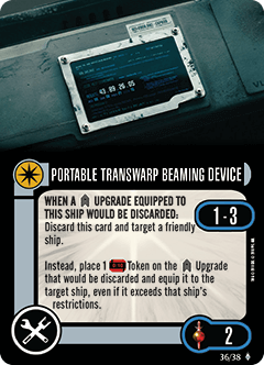 Now we have a very interesting Tech Upgrade that, unlike many of the other cards in this pack, flies solely under the flag of the Mirror Universe. Portable Transwarp Beaming Device is 3 SP and Mirror Universe unique. It allows you take a Crew Upgrade equipped to this ship that would be discarded and beam it over to a friendly ship within Range 1-3, and, instead of discarding that Crew Upgrade, you get to place a Time Token on it and keep it around. This card is tremendously useful for when one of your own effects or and opponent’s effect would discard a Crew Upgrade on your ship. You get to save the Crew and use it again later!
