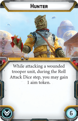 Similarly, the Royal Guards are prepared to hunt down any who would threaten the Emperor, and the Hunter upgrade pairs well with Tenacity, granting them an aim token while attacking a wounded trooper unit.