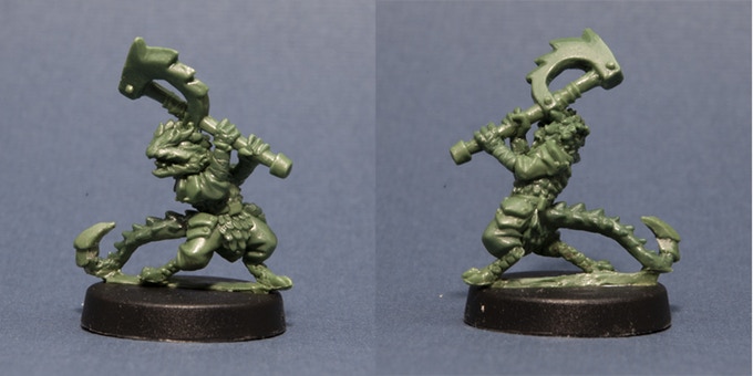 The miniatures will be made of 100% lead free pewter, and some assembly will be required. They will be scuplted on the standard 28 mm scale. Round bases will be included.