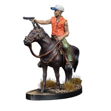This booster pack contains 2 unique, resin, collectible miniatures, allowing you to add Maggie and Glenn on horseback to your games.