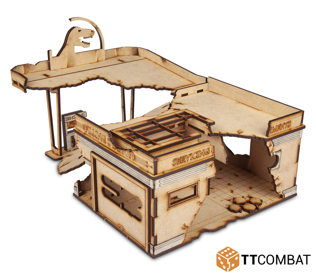 This rundown old pumping station has seen better days. This kit has a collapsed walkway allowing for roof access, a destroyed open design and a removable roof allow for easy access during gaming.