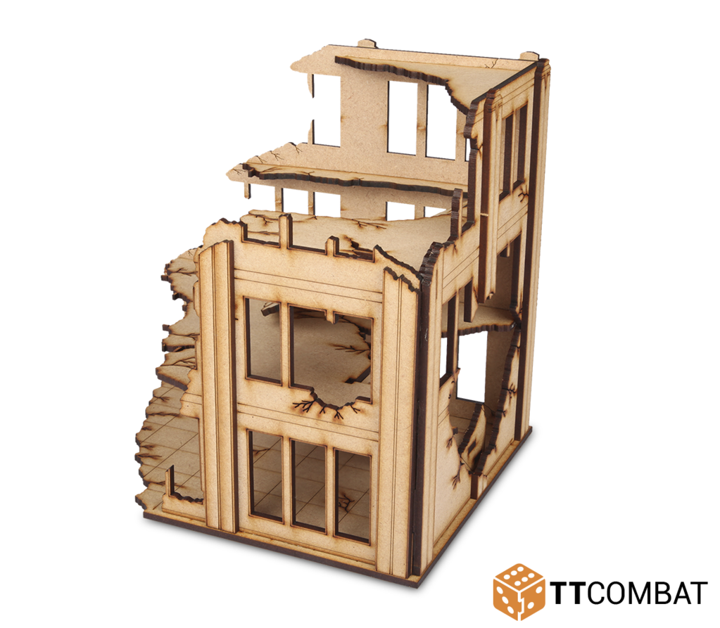 The once towering Lexington Building is now a crumbling shell, a shadow of its former self. This kit has 3 storeys, with staircases and collapsed floor. Its open frame makes for easy access during gaming.