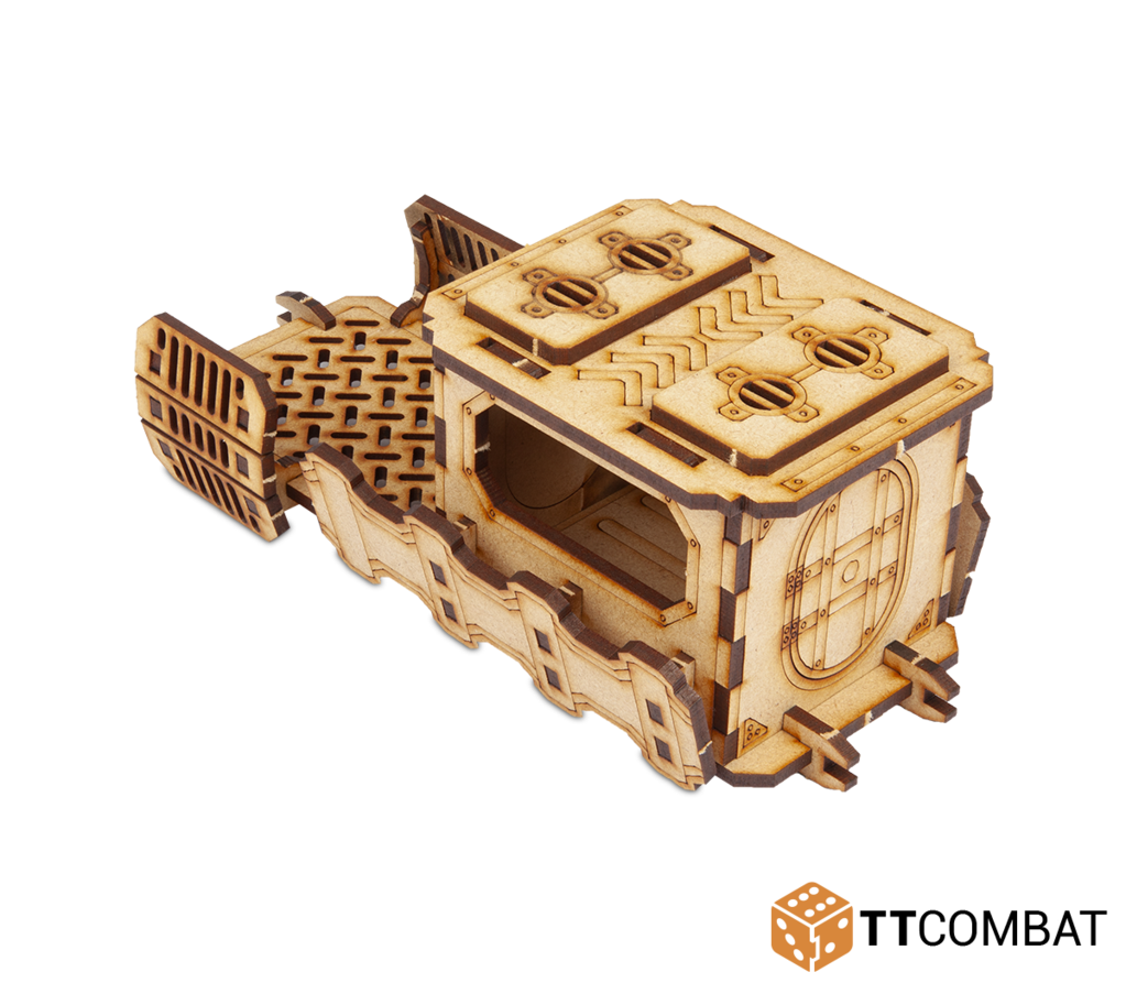 At approximately 24cm tall it’s perfect for 28-32mm scale gaming. Made from 3mm MDF and 1mm greyboard, it’s easy to put together and look greats on the tabletop. Kit contains a Macerator tower, Grabbing Claw, Claw Arm, 3 Conveyors, 2 Crates, 2 Boxes.