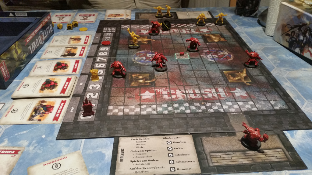 Leider ist aber auch Blitz Bowl nur bei GameStop und der Mayerschen Buchhandlung erhältlich. Die Spieldauer von knapp einer Stunde ist voll im Rahmen, obwohl auch diese durch die Bonuskarten erweitert werden kann. Wir werden uns langfristig sicher auch noch die anderen Teams holen, damit es etwas Abwechslung in unserem Blitz Bowl gibt.
