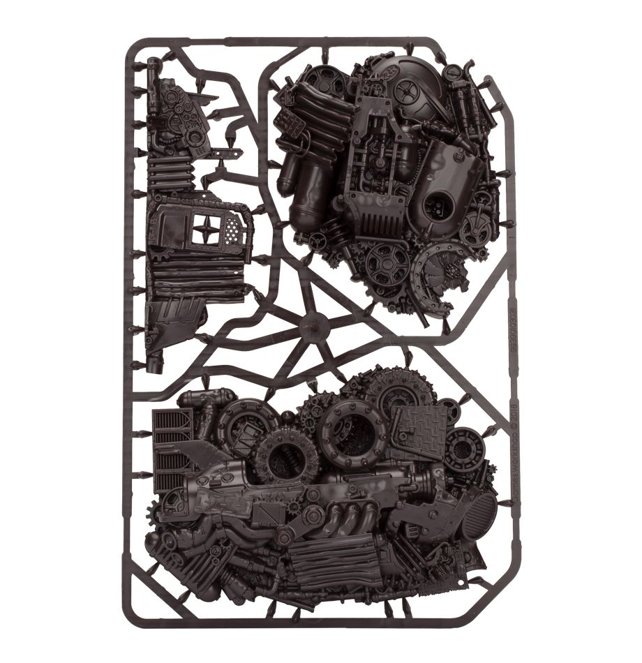 – Ein Kustom Boosta-blasta: Dieses Fahrzeug sieht einem aufgemotzten Strandbuggy, den du in der fernen Vergangenheit auf dem alten Terra hättest sehen können, verdächtig ähnlich, und ist mit der Philosophie gebaut worden, maximale Geschwindigkeit bei minimalem Schutz zu bieten, was durch seine stacheligen Reifen und seine ehrlich gesagt völlig übertriebene Zusammenstellung aus Motorblock und Auspuffrohren unterstrichen wird. Der bullige Fahrer passt kaum in sein Cockpit und wird von seinen vielen Cybork-Aufmotzas in seinen Sitz gequetscht – kein Problem für den begleitenden Grot, der jubelnd aus der Beifahrerseite hängt. Ein anderer Ork bemannt die monströse Bolz’nkanonä auf dem Dach, und das Gesamtbild wird durch einige fiese Stacheln und Hörner abgerundet. Enthalten ist ein Citadel-Ovalbase (150 mm);