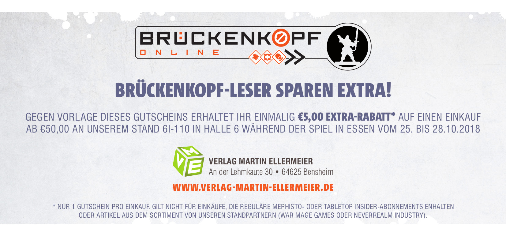 Aber erstens kommt es anders und zweitens als man denkt. Sprich, TTCombat schaffen es doch nicht, und wir konnten dank der tollen Mitarbeiter beim Friedhelm Merz Verlag vor 10 Tagen doch noch ein kleines Eckchen in der Halle 6 ergattern! Wir sind also dabei, wenn morgen in Essen Europas größte Spielemesse beginnt und bestimmt neue Rekorde erreicht.