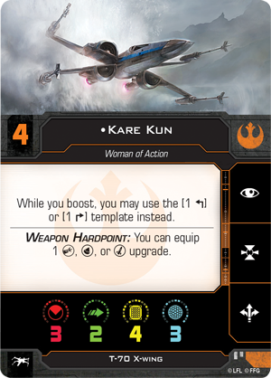 While this droid doesn’t give you the option to boost like BB-8, it still lets you perform a barrel roll before executing a blue maneuver, giving Kun plenty of power to choose where her T-70 winds up.