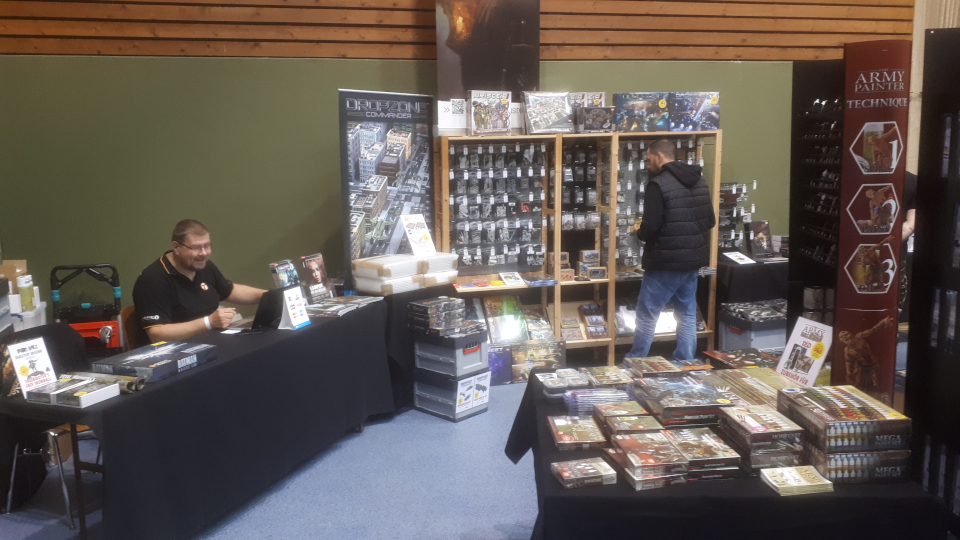 Neben Händlern aus dem Umfeld fanden sich auch einige Hersteller, teilweise mit deutlich weiterem Anfahrtsweg. Unter anderem waren vertreten: der VME (bei dem TTCombat-Gelände, Farben und Carnevale einigen Absatz fanden), Heer 46, Brother Vinni, der Mann mit dem Heißdrahtschneider Gerard Boom, Thomarillion, Army-Box, Phantasos und sogar Stronghold Terrain, welche einige Neuheiten aus dem hohen Norden mitgebracht hatten. Und natürlich Demotische für Saga und Gangs of Rome.