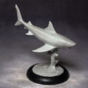 Here are the two Gray Whaler Sharks that come in the DeepWars 2-player starter set. They are predatory wild sea creatures that will hunt down weak, wounded or fleeing models from both warbands.