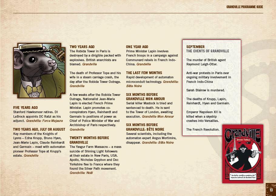 We are delighted to publish the Grandville: 7TV programme guide and profiles cards with Ocelot Games. This 80 page hardbound book – illustrated throughout with Bryam Talbot’s wonderful artwork – is a labour of love from Helena Nash and gives you all you need to enjoy anthropomorphic, steampunk, miniature-based adventures!