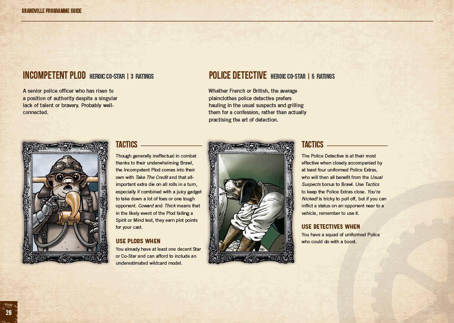 Hardbound book or PDF version are available as well as a deck of deluxe profile cards to support the Grandville miniatures line. The card deck contains a bespoke set of countdown and gadget cards as well as new rules and cards for injuries.