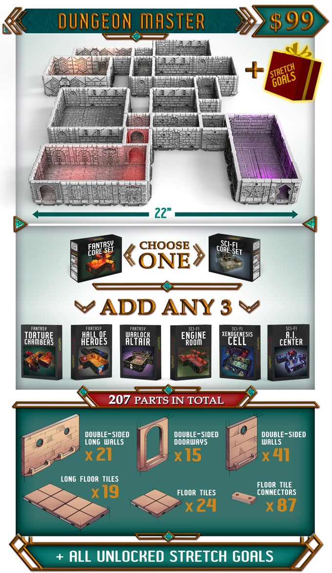 Finde den Kickstarter bzw. deren Dungeonteile sehr interessant. Bei vielen anderen Produkten hapert es an der Spielbarkeit: mal sind die Felder zu klein (für Heroic), die Türen fix geschlossen, die Wände zu hoch (und dadurch Gefummel). Hier scheint man alles richtig gemacht zu haben.