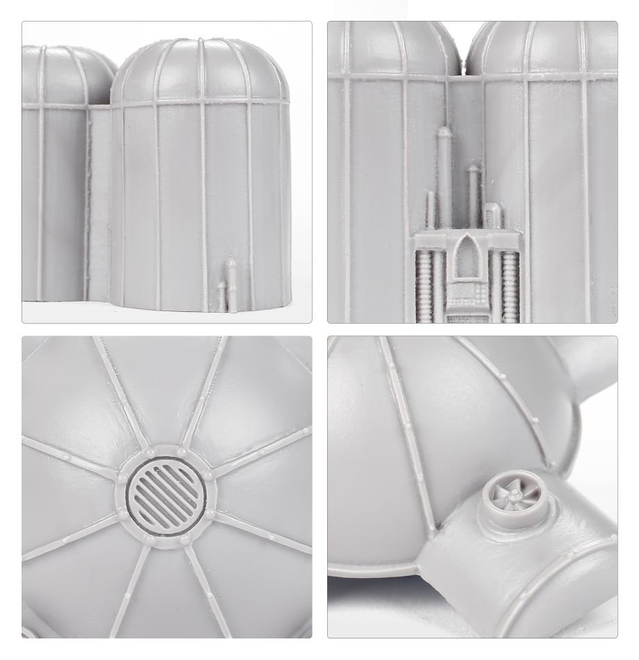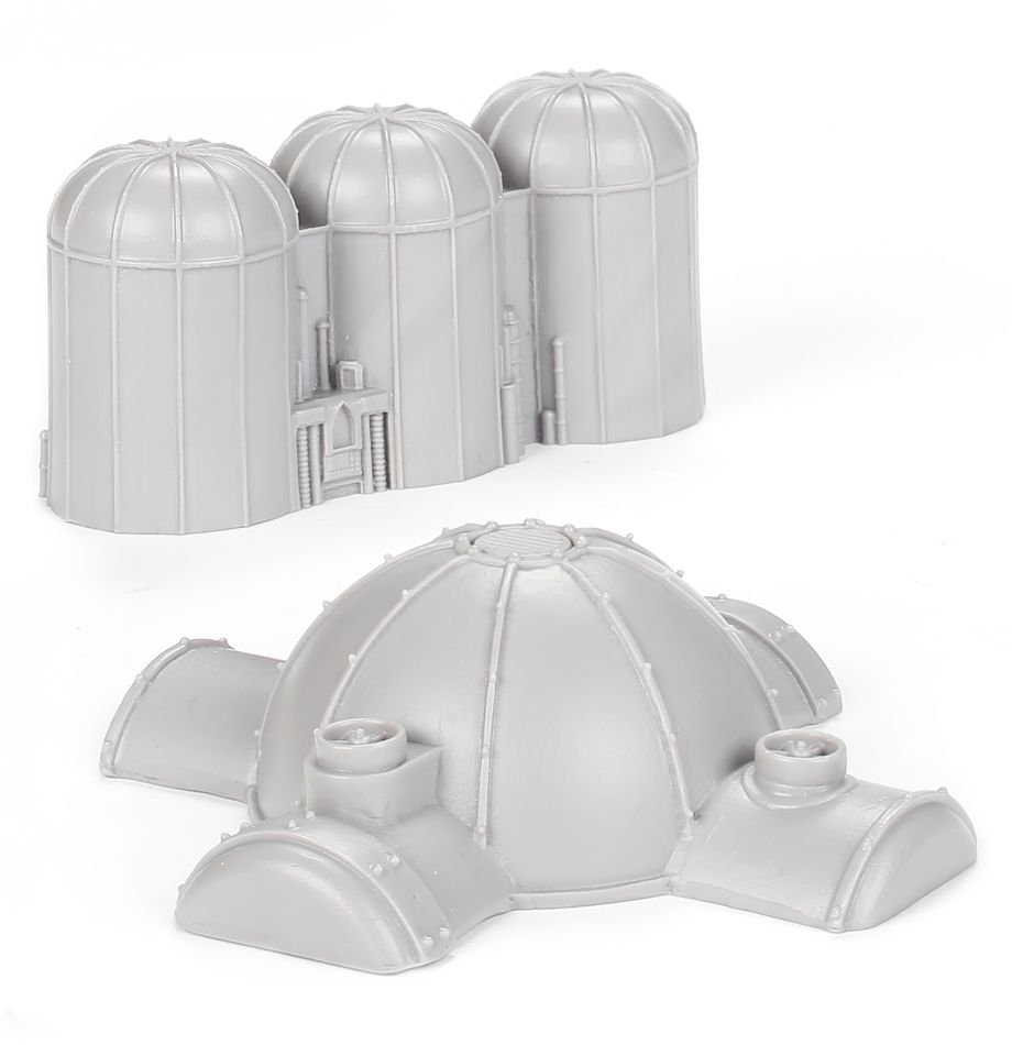 – Adeptus Titanicus Silos – one set of three resin silos and one large storage area