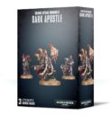 Der Bausatz des Dark Apostles besteht aus drei mehrteiligen Kunststoff-Modellen. Der Dark Apostle ist eine wichtige HQ-Auswahl für die Armee der Chaos Space Marines und kann von zwei Dark Disciples begleitet werden. Der Dark Apostle trägt ein Verfluchtes Crozius und einen finsteren dämonischen Folianten bei sich. Im Kampf kann er die Dunklen Götter mit Gebeten um ihren unheiligen Segen anrufen. Die korrumpierten Relikte der Dark Disciples unterstützen ihren Meister bei seinem inbrünstigen Gebet an die Chaosgötter.