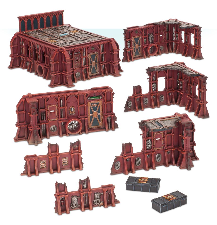 – 5 mehrteilige Sicarian Infiltrators des Adeptus Mechanicus aus vorgefärbtem roten Kunststoff, die entweder mit Sturmkarabiner und Energieschwert oder mit Flechettewerfer und Taserstab bewaffnet sein können. Sie können auch je nach Vorliebe als Sicarian Ruststalkers gebaut werden, die entweder ein Paar Transsonischer Klingen oder einer Mischung aus Chorda-Klaue und Transsonischem Messer erhalten können