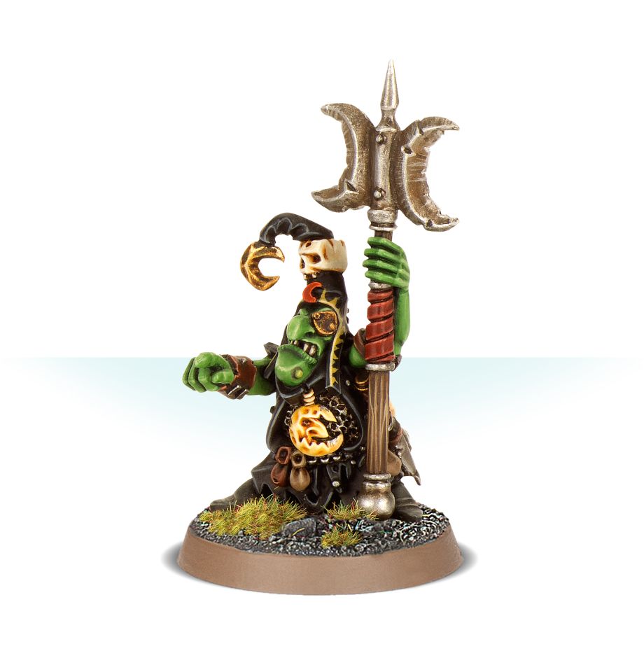 Diese beiden Miniaturen ermöglichen dir, deine Armee um die Macht von Gork und Mork selbst zu erweitern, indem du mächtige Zauberer aufnimmst, die die Macht des Waaagh kanalisieren. Einer von ihnen geht zu Fuß und trägt einen Stab bei sich, der andere Reitet auf einem gewaltigen Wildschwein und ist mit Stab und Schwert ausgerüstet.