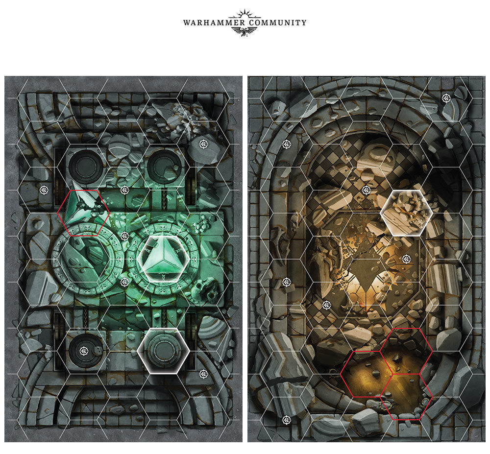 Inside the Forbidden Chambers Board Pack, you’ll find a double-sided gaming board with some unusual features. The first side allows you to set up three fighters adjacent to one another and is ideal for defensive setups and small warbands like Steelheart’s Champions. Meanwhile, the second side contains a group of three lethal hexes, making for a deadly deterrent to any enemies who’d risk coming into your terrain.