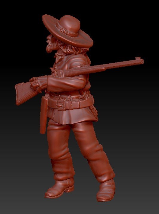 Tonight I finished off one of the fraternity of scouts and buffalo hunters I’m going to issue this summer. Buffalo Bill and „the Frontiersman“ (a.k.a. Billy Dixon) are already slated for this pack, and tonight’s character will also be included: meet Honest JIm Baker (you can Google him if you like).
